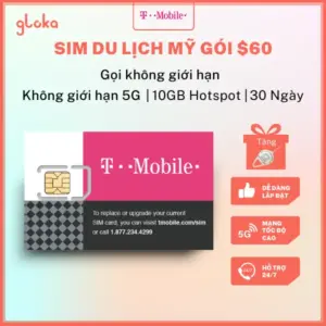 Mua Sim du lịch Mỹ T-Mobile chính hãng gói $60, 30 ngày tại Việt Nam: Đây là sim Mỹ chính hãng T-Mobile (T-Mobile là nhà mạng lớn thứ 3 nước Mỹ với 118 triệu số thuê bao hòa mạng tính đến năm 2023), sim sử dụng ở toàn bộ các bang của Mỹ (trừ bang Alaska).